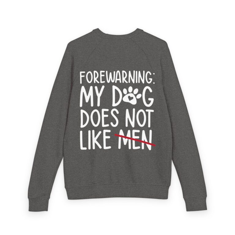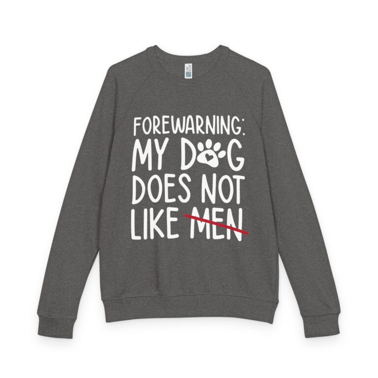 Sweater: My Dog Does Not Like Men Unisex French Terry Raglan Crewneck